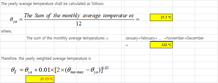 <Calculation of yearly weighted average Temperature ( E θ )>